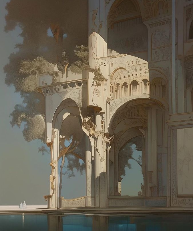 Il Palazzo d’estate sorgeva adagiato tra i cipressi, baciato dal sole alto e fiero nel cielo limpido del mattino. La giovane Al’enar camminava scalza tra gli archi del chiostro, accompagnata dal dolce scorrere dell’acqua nelle ampie vasche ornamentali. Sarebbe dovuta essere a lezione con il suo maestro in quel momento, l’alto sacerdote Salmeter incaricato della sua educazione, ma quella era una mattinata speciale. Quella mattina sarebbero arrivati ospiti a palazzo.